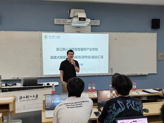 2024年6月23日,浙江树人学院智慧康养产业学院举办的健康大数据应用创新班(微专业)结业汇报活动在学院A4-213教室圆满落幕。此次活动不仅是学生们经过连续六个周日刻苦学习的成果展示,更是学院与企业联合教学模式的又一次成功实践。