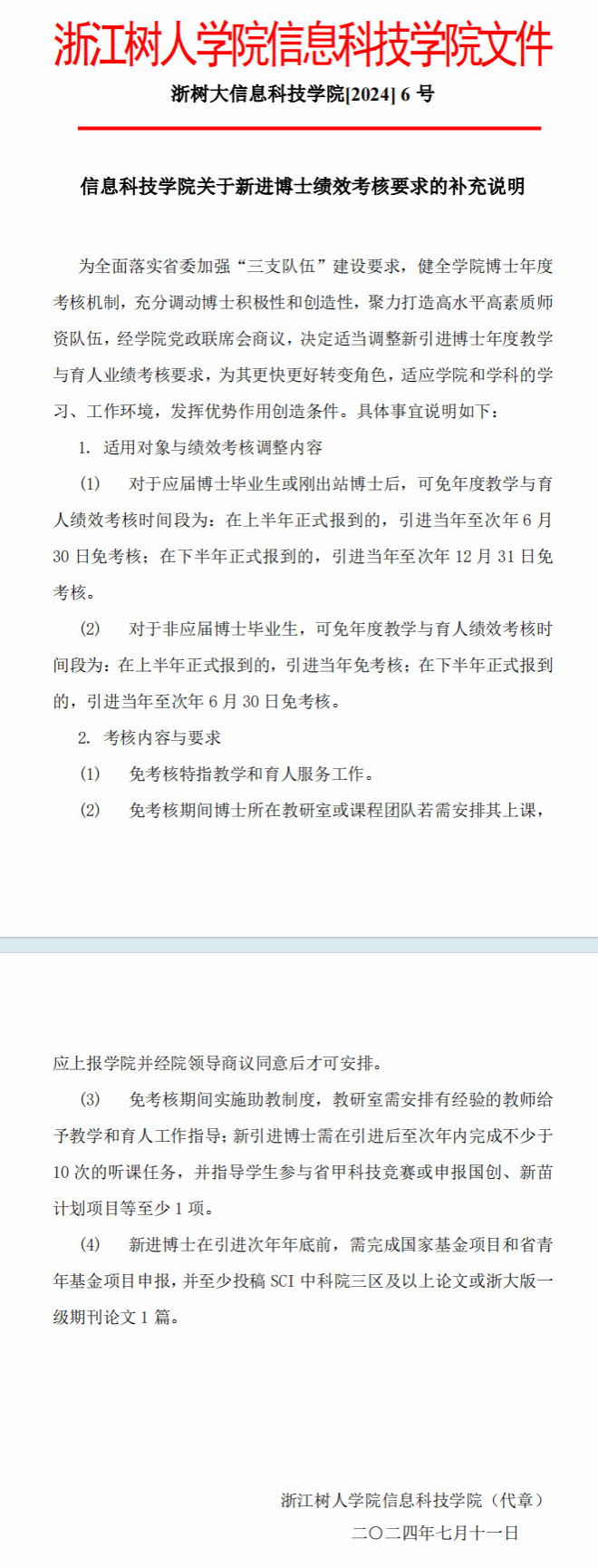 2024年06号 9999js金沙老品牌关于新进博士绩效考核要求的补充说明