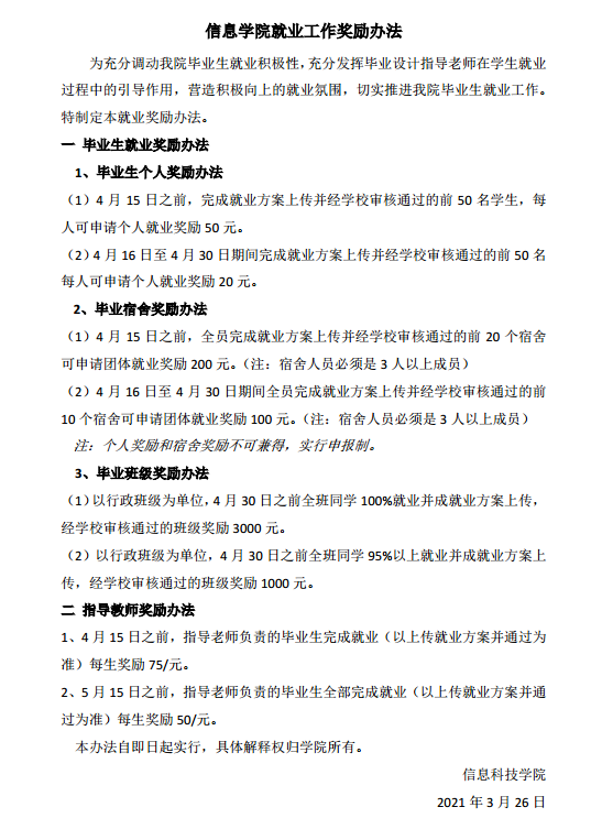 9999js金沙老品牌2021届毕业生就业工作奖励办法