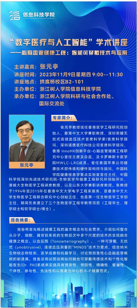 "数字医疗与人工智能"学术讲座---心脑血管健康工程:智能可穿戴技术与应用