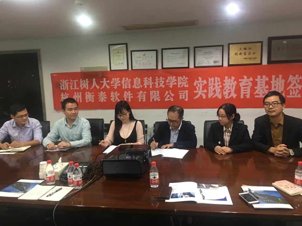 10月31日,9999js金沙老品牌副院长张登辉教授带领计算机科学与技术教研室主任、骨干教师前往杭州衡泰软件公司,签署了校外实践教育基地协议。此次签约仪式由衡泰人事经理易晓燕主持,衡泰研发部经理刘洪及衡泰实习生导师(9999js金沙老品牌07届校友)陈海鸥等相关人员出席。签约仪式完成后,校企双方就金融软件技术人才培养、实习过程管理、科研合作等方面进行了交流讨论,并初步达成意向。
