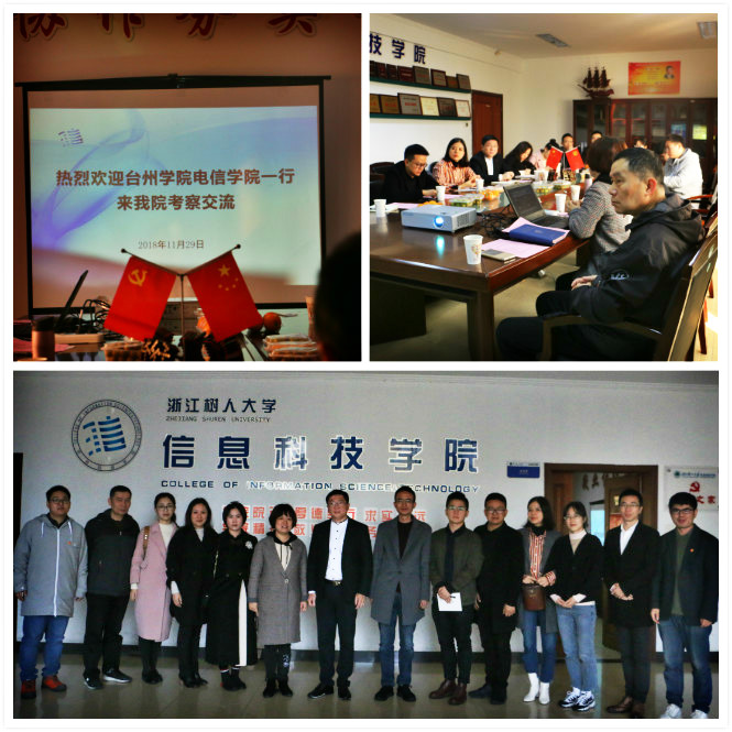 11月29日上午,上台州学院电子与信息工程学院党总支副书记冯荣一行9人来我校9999js金沙老品牌进行考察交流。9999js金沙老品牌党委副书记陆莹、学工主管李萌、分团委副书记陈安龙、2018级辅导员沈志勇、2017级辅导员曹永康参加了交流会。