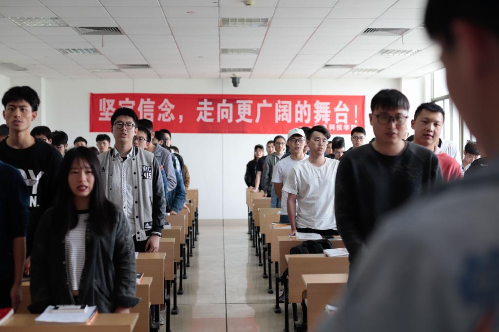 最后,考研班班长任孝涵带领全体考研班同学宣誓,同学们的声音在教室里回荡,他们用青春的名义宣誓: