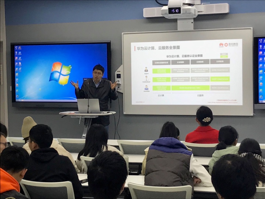 近期,华为公司“云大物智”百校行活动在我校A4-201多媒体教室成功举行,华为浙江区ICT学院负责人牛凤平、华为合作伙伴泰克教育经理林丽、信息学院任条娟院长、通信教研室所有教师等受邀出席本次活动。当下智能社会正在到来,各行各业数字化转型正在深入,而ICT人才则是数字化转型的关键和驱动力。《中国ICT人才生态白皮书》指出,到2020年ICT人才缺口将达1246万。而基于云计算、大数据、物联网、人工智能等新型ICT技术的精英人才更是行业亟需。而华为ICT学院“云大物智 ”百校行系列活动正是为此而生,传播ICT理念,培养ICT技术精英。