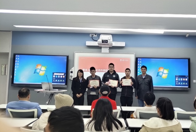今年有12位同学参加“华为·泰克班”集中式的学习,从7月中旬一直到9月底,同学们克服夏天天气炎热、晚上蚊虫叮咬等困难,通过坚持不懈的努力完成华为云计算HCIE内容的学习,为此通信教研室教师对完成学业的通信颁发结业证书。有三位同学进入泰克教育集团的“雏鹰计划”,作为今后泰克教育讲师的培养对象,有三位同学被华为五钻经销商中港集团直接录取,对学习优异的三位同学陈志文、何刚刚、傅家欢由任条娟院长颁发优秀学员证书,泰克教育集团徐来教学总监颁发奖金对其进行表彰。