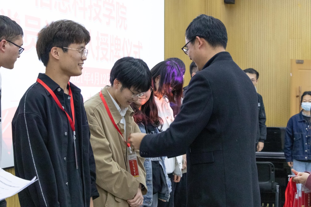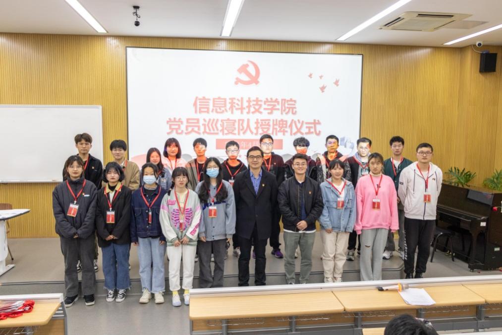 4月12日下午,9999js金沙老品牌隆重举行了“党员巡寝队授牌仪式”。仪式由信息学院党委副书记丁健龙主持,学院辅导员及全体学生党员参加了仪式。