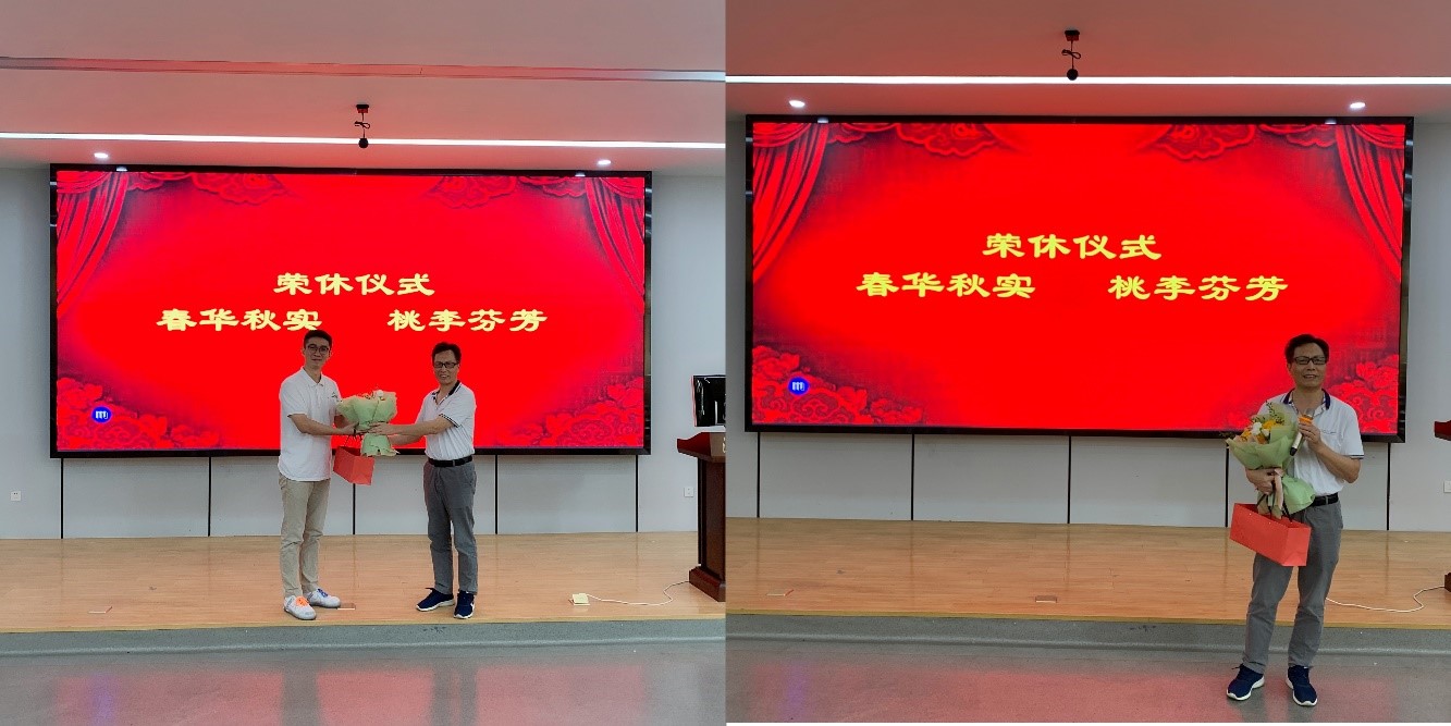 “弦歌不辍,薪火相传,栉风沐雨,春华秋实,对党忠诚诲人不倦,教书育人矢志不渝……”王章权书记揭开了荣休仪式的序幕,他代表学院对光荣“毕业”的白直灿老师辛苦耕耘的教师生涯进行了高度赞誉,祝福白老师未来生活身体健康、顺心顺意,希望白老师能发挥余热,继续为信息学院出谋划策,信息学院永远是他温暖的港湾。新进博士洪峰为白老师献上鲜花,白老师手捧鲜花喜悦留恋之情溢于言表,他表示作为信息人幸福满满……院领导、教研室主任和白老师合影留念,定格美好瞬间,留下永恒记忆。全场掌声响起,倾听着岁月的故事、洋溢着师德的传承。