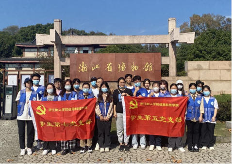 为更深入学习领会二十大精神,在净山毅行活动后,全体成员前往浙江省博物馆参观了解中华优秀传统文化。每个时代都有自己时代的标志性事件,标注着这个时代在民族发展史和人类发展史的新高度,每一件文物都见证着生产力水平、社会生活、审美情操和地域文化的变迁。在参观历代文物的过程中增强了党员同志对民族精神和文化的认同感。