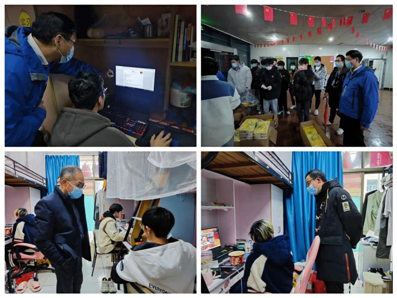 (图:副校长叶时平、学院党委副书记丁健龙、教学副院长张登辉走访学生寝室)