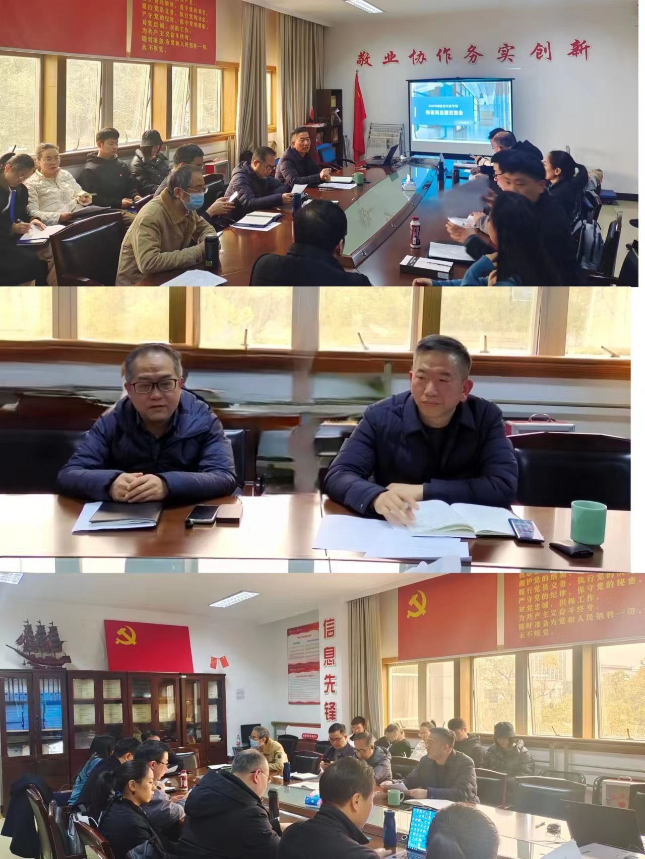 听完汇报后,副院长张登辉对在座特设岗教师所做的工作表示感谢,希望大家在各自岗位能上点、面结合,坚持政治引领,统筹协调,凝心铸魂,合力推动学院整体工作。王章权书记对特设岗教师的务实重干,团队的齐心协力,工作氛围的温馨健康,2022年所取得的成绩给予了肯定。他表示,这样的交流形式既有利于自身工作的总结反思,又有利于学院中层骨干间的了解、理解与学习促进,学院将结合考核、分配制度的优化与改革创新推动需要,将此成为常态化的学习活动之一,并结合总结交流内容与特设岗职责要求提出四方面要求:一是加强统筹。要认真学习研究学校、学院工作重点与年度考核指标要求,结合基层组织实际研究并确定工作重点目标,理清工作思路与途径;二是加强研究。既要做好个人研究,在教学、科研、育人、社会服务等方面发挥积极的作用并取得一定的成果,成为能够得到团队认可并引领发展的研究型教师,也要加强在如何开展基层组织管理的思考与研究,提升组织力;三是加强组织。要进一步根据学院发展需要与目标,结合基层成员实际,围绕目标建立常态机制,开展有组织的研究,提升基层组织的凝聚力、战斗力;四是加强总结。要善于对思想和工作进行梳理总结,反思不足和问题,修正工作路径与方法,形成正向工作闭环。