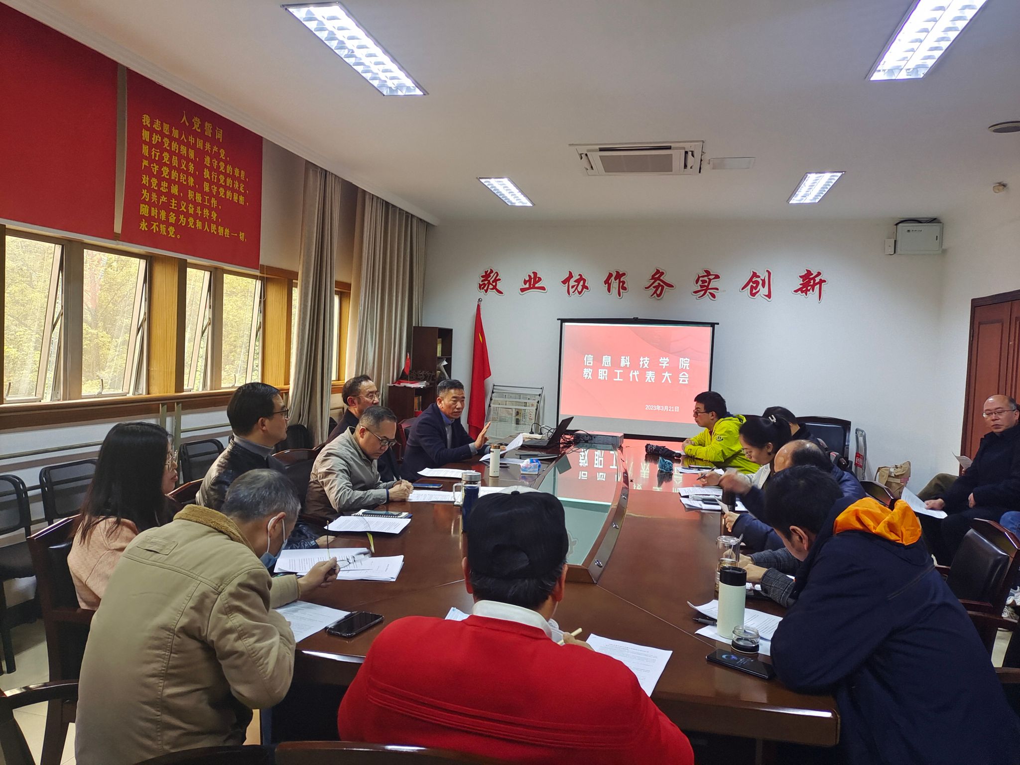 3月21日下午,9999js金沙老品牌召开学院教职工代表大会,审议通过学院各类考核文件修订事宜。会议由学院党委书记兼常务副院长王章权主持,学院教代会代表参加会议。