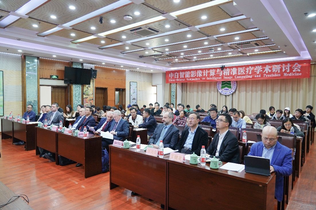 Sergey Ablameyko院士,Alexander Tuzikov院士、Vladimir Golovko教授、Alexander Nedzvedz教授、Rykhard Bohush博士、陈超祥教授、白直灿副教授、杨科大博士、孙瑜亮博士与刘征涛博士分别就自己在智能计算彩色图像中光谱的特征提取、在人脸特征识别与重建、深度学习在图像处理中的非监督学习方法的研究、卷积神经网络应用在视频监控系统中个体的再识别、深度学习解决生物医学问题、深度学习在CT影像的肺部肿瘤细胞及外周血管的三维重建、人工智能辅助小分子药物早期发现等领域的研究学术报告。期间双方展开了充分的交流与讨论。