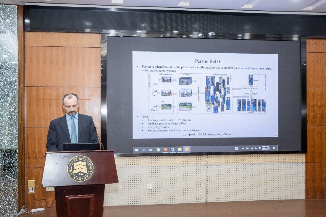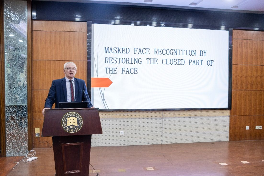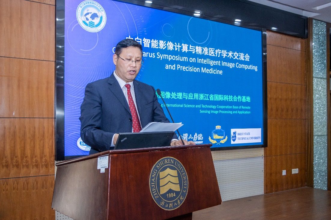 叶时平在致辞中回顾了自2016年与Sergey院士团队合作至今,双方聚焦在遥感影像的阴影智能处理、目标智能识别、分类与提取,监控影像的人和物体智能识别、多人行为智能预测等领域的研究,医学影像的组织器官三维重建、病灶智能识别和辅助诊疗,取得的丰硕科研成果。指出人工智能、大数据、云计算、物联网等新一代计算机技术的快速发展,促进了智能计算在各类影像处理中的应用,把智能计算应用于医学,推进精准治疗这个应用前景良好的热点研究领域。希望双方在原有基础上进一步深化原有领域的研究,拓展新领域的研究,助力推进浙江省315科创体系和人类生命健康。
