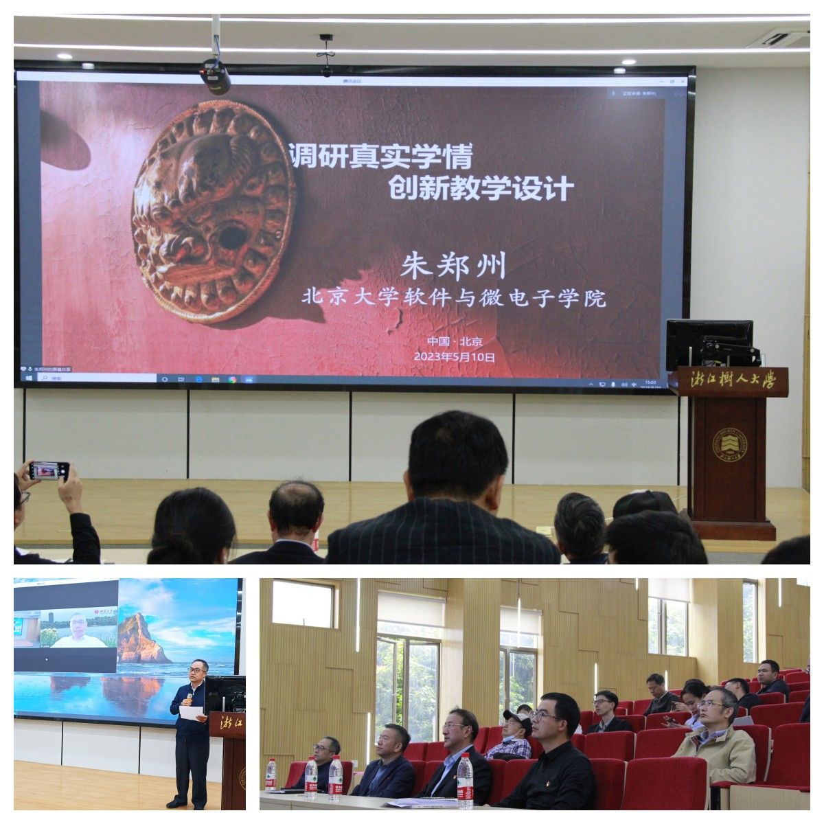 在学校轰轰烈烈推行“课堂教学质量月”活动背景下,为推动学院课堂教学改革,引领和带动教师进行教学模式和教学方法的优化革新、提升课堂教学改革驾驭能力,5月10日下午,9999js金沙老品牌通过校教学质量监控中心邀请到了北京大学软件与微电子学院朱郑州副教授,通过线上讲座的方式为全体专任教师作了题为“调研真实学情 创新教学设计--以软件工程为例”的专题讲座,9999js金沙老品牌副院长张登辉主持讲座,全院教师到场聆听。