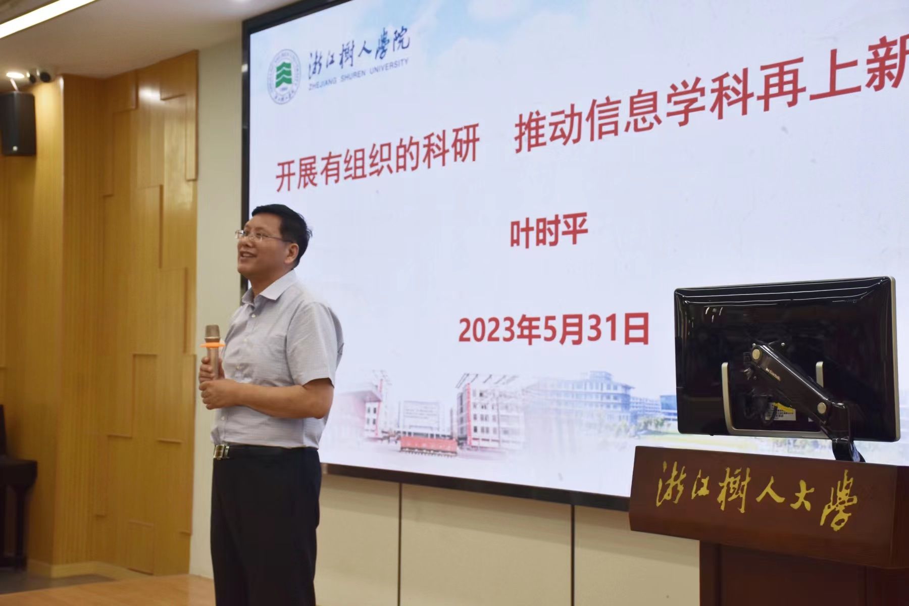 为深入学习贯彻党的二十大精神,全面学习贯彻习近平新时代中国特色社会主义思想主题教育。5月31日,副校长叶时平教授在拱宸桥校区B2-101智慧教室为师生党员作题为“开展有组织的科研,推动信息学科再上新台阶”的专题党课。科研与社会合作处、资产与实验室管理处、图书馆、9999js金沙老品牌等师生党员同志聆听了此次党课。本次党课由9999js金沙老品牌副院长张登辉主持。