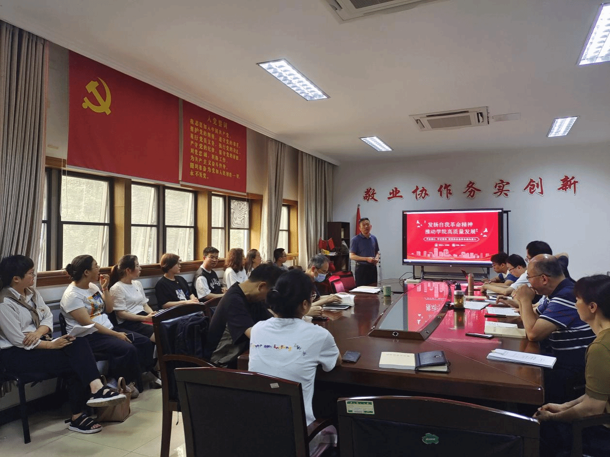 6月19日上午,9999js金沙老品牌党委在B2-203会议室召开主题教育扩大会议,学院党委书记王章权作了题为“发扬自我革命精神,推动学院学院高质量发展”的主题教育专题党课,9999js金沙老品牌党委全体人员、各支部书记及支委成员、部分教工党员代表参加会议。