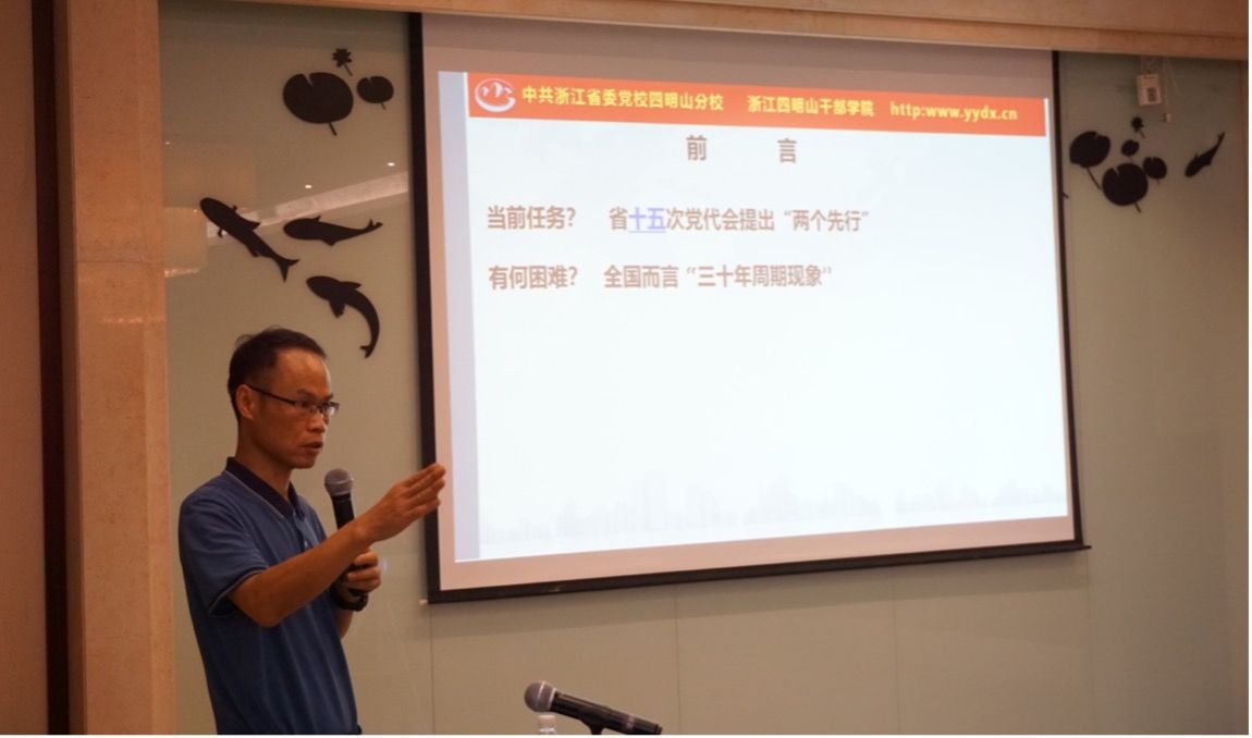 8月23日,学院党委邀请了余姚市委党校、浙江省委党校四明山分校(浙江四明山干部学院)副校长赵奇伟为支部党员讲授以“学党史破难题开新局——借鉴党史智慧促进共同富裕”为主题的党课。赵校长通过中国共产党的发展历程及百年奋斗史的讲授,使全体党员对党史有了更深入的理解,并提出“党史”就是“党的艰苦奋斗史”,党员同志要借鉴历史能知鉴,通过学习党史汲取奋进力量,前事不忘后事之师,钱事不忘后事之师,虔事不忘后事之师,做到四心(中心、决心、耐心、信心),在百年新局中奋力推进浙江共同富裕示范区建设。