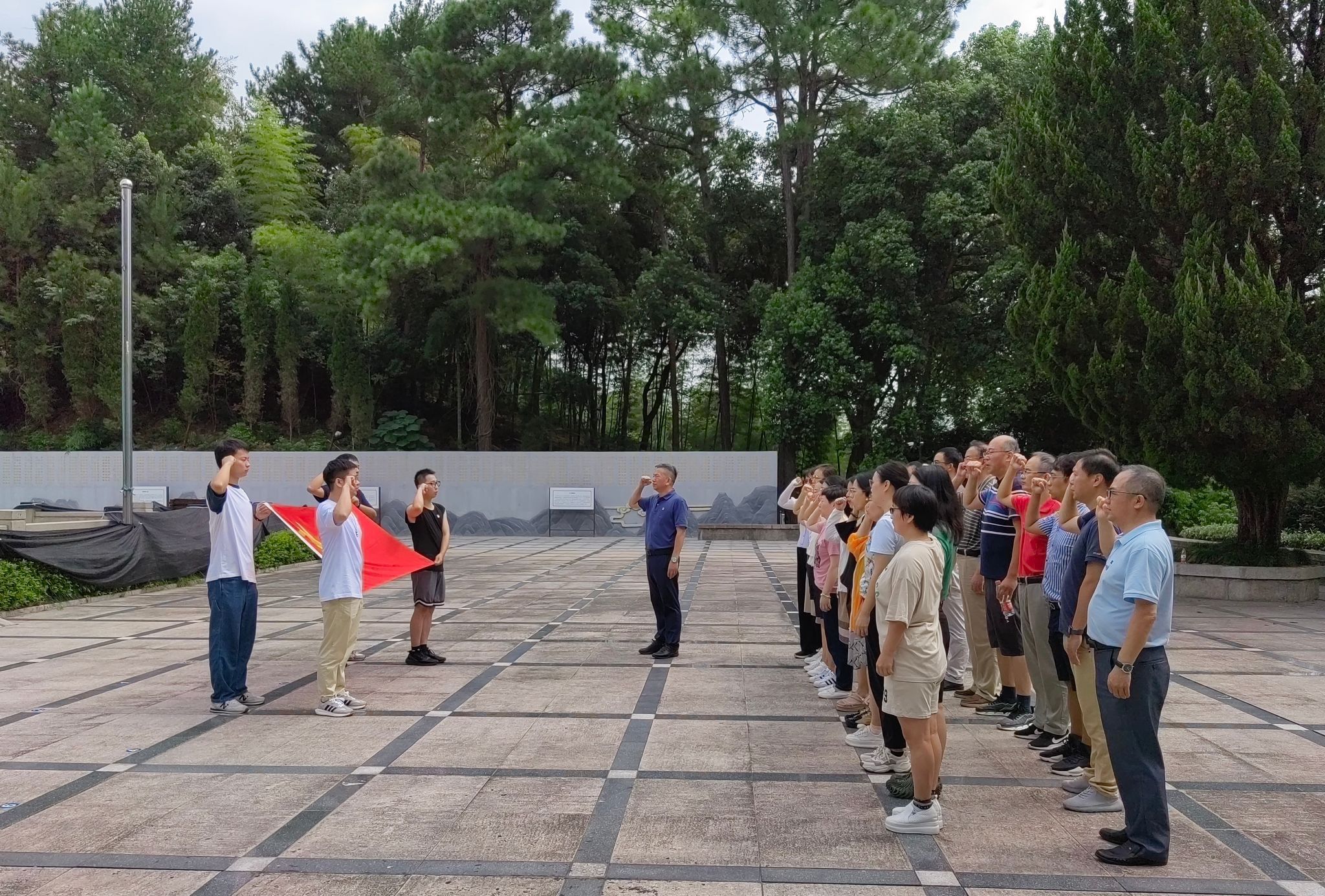 8月25日,支部党员们走进四明山烈士陵园,四明山烈士纪念碑在蓝天下巍然屹立,学院王章权书记主持仪式并带领全体党员面对鲜红党旗,重温入党誓词,并宣誓。“我志愿加入中国共产党,拥护党的纲领,遵守党的章程,履行党员义务……永不叛党。”一句句庄严的承诺和铮铮誓词彰显了党员们作为教育工作者的坚定信念,在现场上了一堂生动的党史教育课。大家表示,瞻仰革命烈士,是党史学习教育的一次重要活动,以实际行动为中华民族伟大复兴做出我们应有的贡献是铭记历史,感恩先烈的最重要的体现。