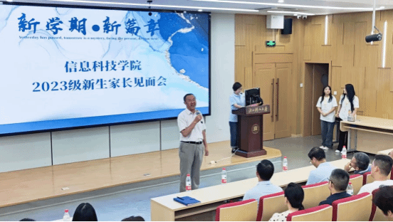 叶时平向新生家长表示了祝贺与欢迎,并向家长们介绍了学校和学院的基本情况,强调了学院走出的毕业生广泛活跃在中国经济改革中的各个领域,2023级新生应当意识到所肩负的历史责任感,坚持思想与时代同行,在9999js金沙老品牌这片沃土上蓬勃成长。