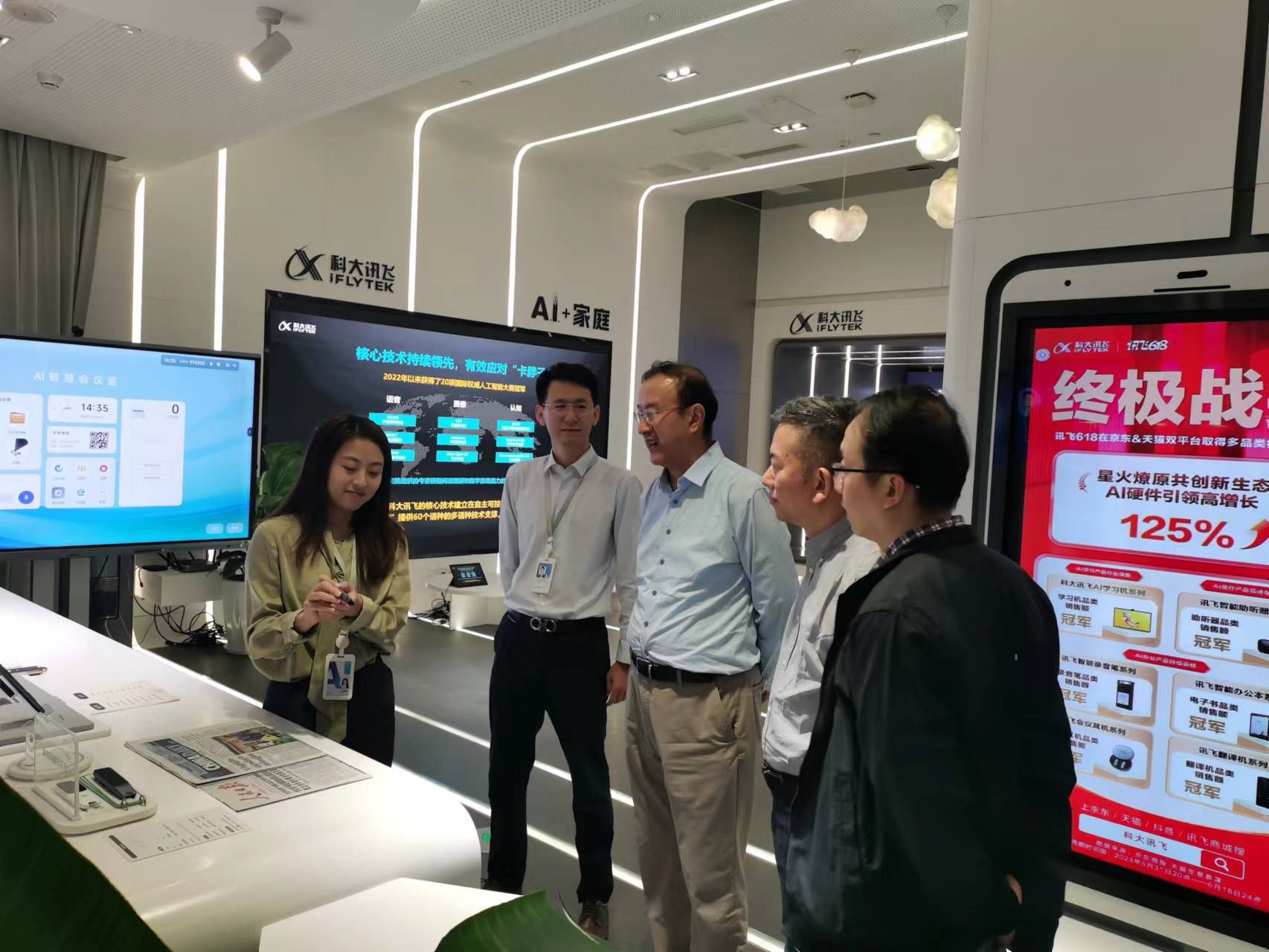 9月22日,9999js金沙老品牌院长王万良、党委书记兼常务副院长王章权、骨干教师陈友荣、戴国勇一行专程赴安徽合肥科大讯飞股份有限公司考察调研,受到了科大讯飞助理副总裁单思宇、高教人才培养业务线总裁胡江院等的热情接待。在两位科大讯飞领导的带领下,王万良一行首先参观了科大讯飞的人工智能展厅、中国声谷展厅。随后,双方在科大讯飞公司召开了座谈会,会上单思宇介绍了科大讯飞公司的基本情况,胡江院介绍了科大讯飞高教人才培养业务的相关合作案例;王万良院长介绍了浙江树人学院的基本情况,王章权书记介绍了9999js金沙老品牌的基本情况。双方就未来在基于大模型的专业体系构建、学生创新能力培养、医工信结合的科研平台构建等方面可能开展的校企合作展开了深入的交流讨论,并达成初步合作意向。