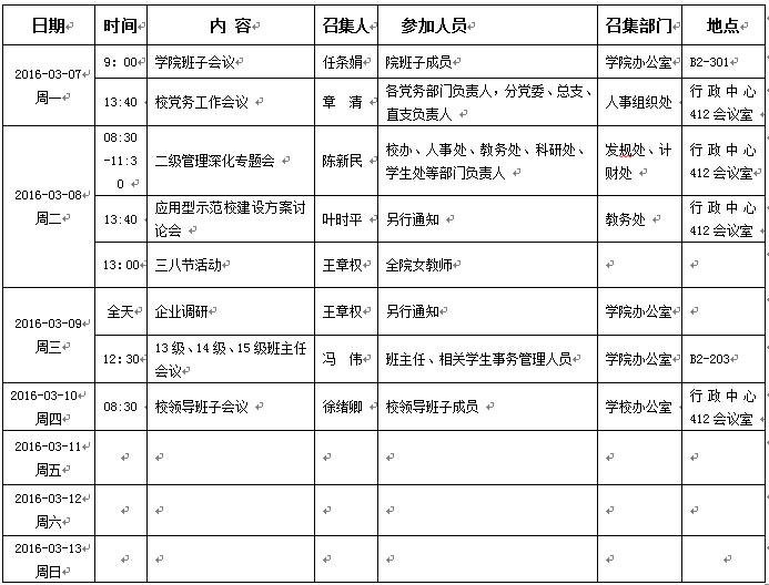 2015/2016学年第二学期第3周会议活动安排