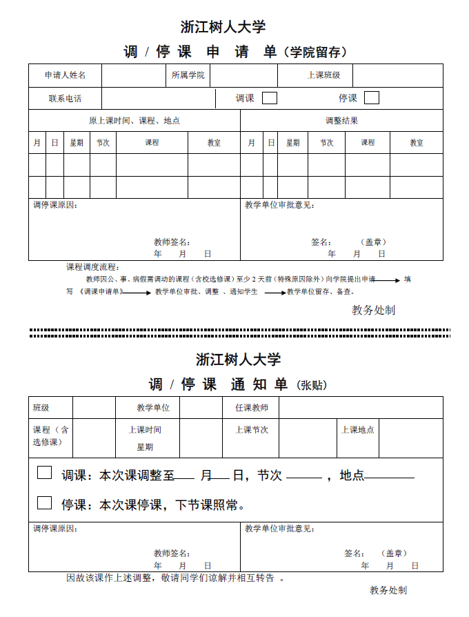 调课、停课通知单