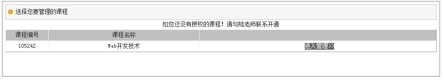 很多老师课程负责多门以上的课程(课程的管理权限由教学口的老师集中管理),您需要点击相应课程后面的“进入管理》”,即可进入该课程的管理后台。