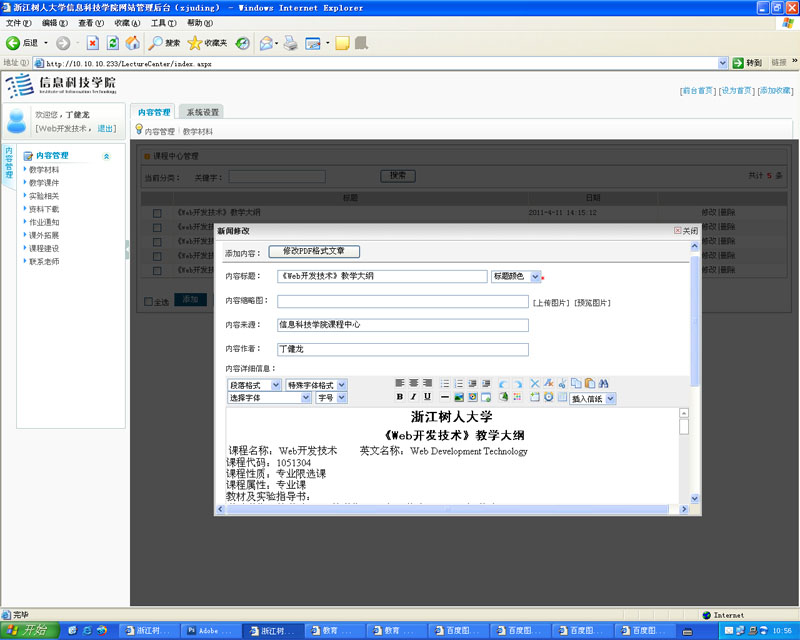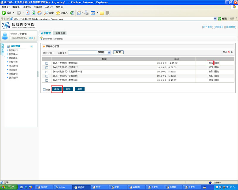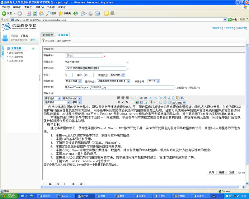 个人信息的修改与课程信息修改类似,“系统管理”》“个人信息管理”进入后进行修改。