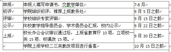 省教改、校教改、校课改项目的申报、评审程序及时间: