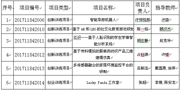 2017年国家级大学生创新创业训练计划(“国创计划”)项目