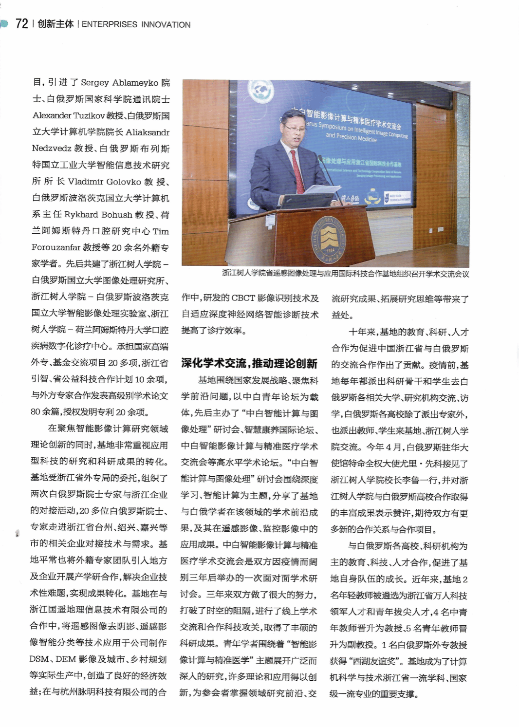 报道回顾了我校积极响应习近平总书记提出的“丝绸之路经济带”和“21世纪海上丝绸之路”的“一带一路”合作倡议,十年来与白俄罗斯高等院校、科研机构在教育、科技、人才的交流合作。将基地从与白俄罗斯国立大学的合作拓展到与白俄罗斯更多高校科研院所的合作、聚焦智能影像计算研究领域理论创新、重视应用型科技的研究和科研成果的转化等方面进行了介绍。