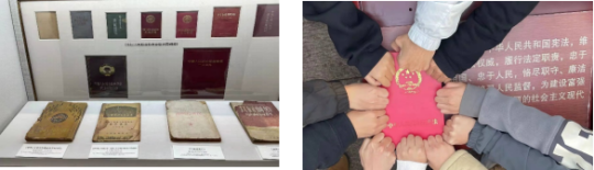 追寻着宪法发展的脚步,在另一边的展厅里,同学们参观着一代代宪法的发展,体悟着宪法精神的传承和发扬。宪法的发展同时也展示着中国法治社会的发展。