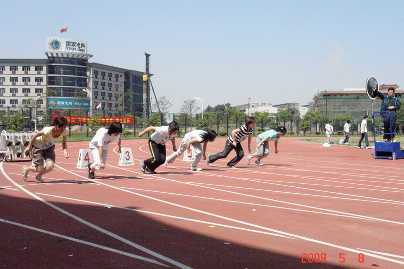 在下午的各项比赛中,运动员们奋力拼搏,拉拉队们呐喊助威,好一派运动的景象。在100M比赛中,那些健将们个个如虎,飞一样的冲向终点,有的还刷新了学院的记录。那短短的100米,是人生的一点,可是这点,是这样的完美,这样的有价值。400M的比赛,那圈,运动员们就这样,在自己人生的历史上画了这样的一个圈。这圈中,有你,有我,这圈外,有他,有她。从起点到终点,起点就是终点,枪声响起的那一刻,跃过终点的那一刻,都是人生最美丽的片断。5000M,有多少人望而生畏,又有多少人曾经有过期待,可是,那较量需要有强壮的身体,顽强的毅力。这次比赛,来自各个班级的14位勇士选择了挑战,但是,经过医院对运动身体的检查,只有4为符合标准。这也说明了当代大学生需要强身健体,需要运动。十二圈半的漫长跑道,运动员们凭借着自身的身体素质与精神毅力,顽强的跑完全程。在终点,我们为这样的英雄鼓掌,我们为信息有这样的英雄而骄傲。没有鲜花的终点,我们给你们灿烂的微笑和佩服。跳高场地上,那完美的弧线,不时地赢得阵阵掌声;铅球场地上,那空中的抛物线,近似标准的动作也同样精彩;跳远场地上,那腾空的姿势,同样给了我们以观赏价值。