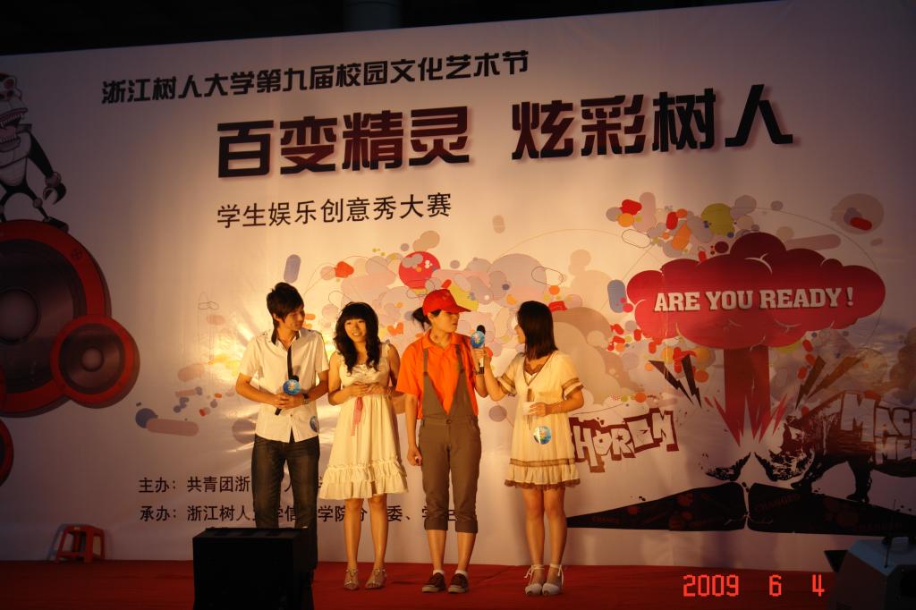 ?xml:namespace>6月4日晚上,在北校区体育馆前,第九届校园文化艺术节之娱乐创意秀大赛——“百变精灵,炫彩树人”在这里上演。本次活动由校团委主办,9999js金沙老品牌承办。校学工处陆桂芹处长,校团委俞海标书记,信息学院叶时平院长,党总支副书记陈伟芳老师等出席了本次活动。来自其他兄弟学院的老师及我院的老师担当本次比赛的评委。精彩的演出吸引了众多学生到场观看。?xml:namespace>