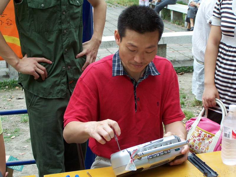 有一位老人让所有的志愿者都投以赞许的目光,老人不只是来修东西的,并且在我们修的时候还不断地问为什么坏了,这种“活到老学到老”的精神值得我们每一个人学习。