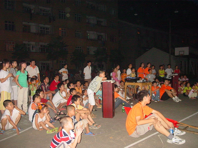 7月9日晚在威坪镇商辂丝厂进行科普影片展,落实与推广科普知识;