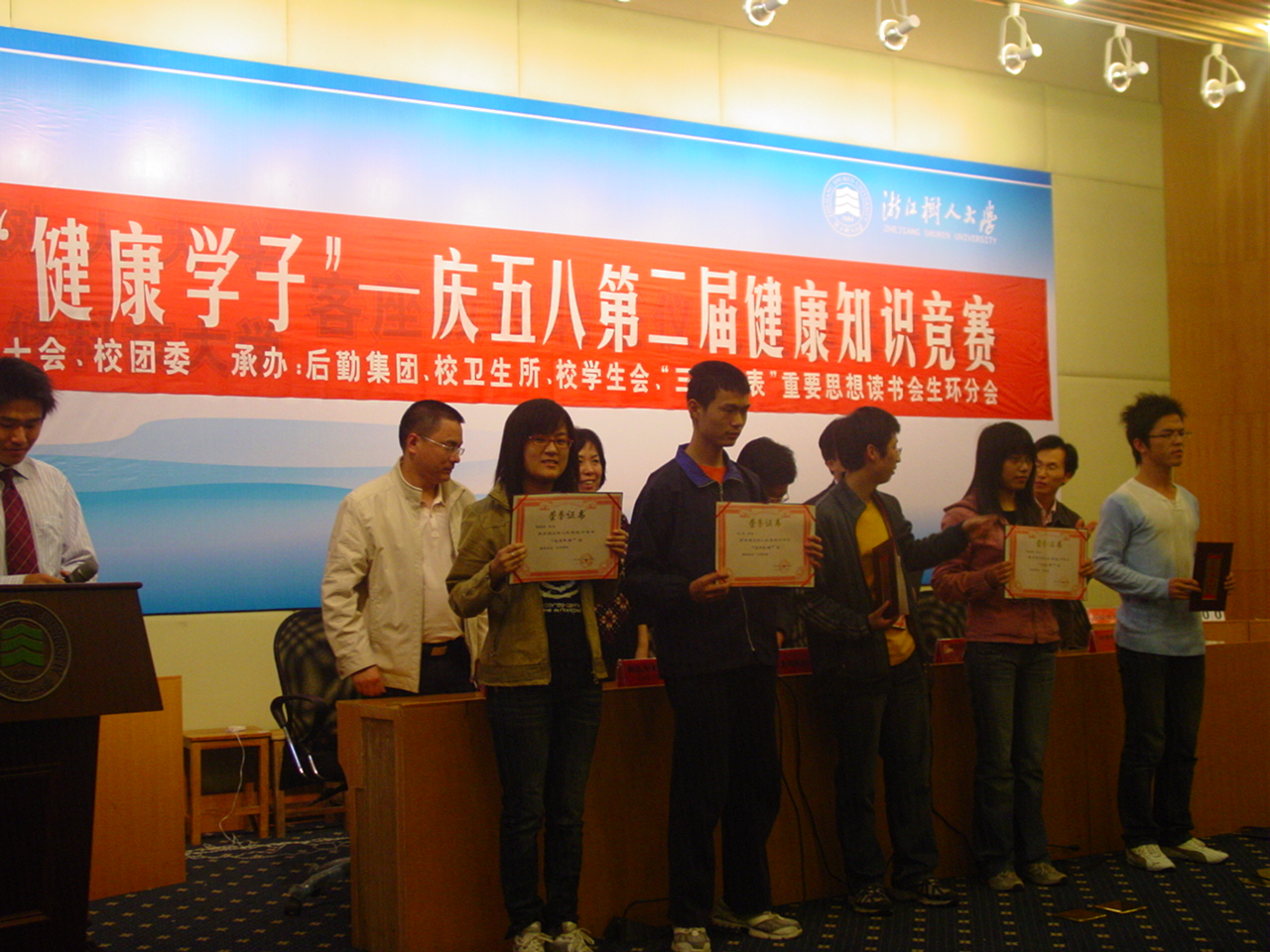 2007年4月27日下午1:30。浙江树人大学“健康学子”——庆“五·八”第二届健康知识竞赛在树人礼堂举办。