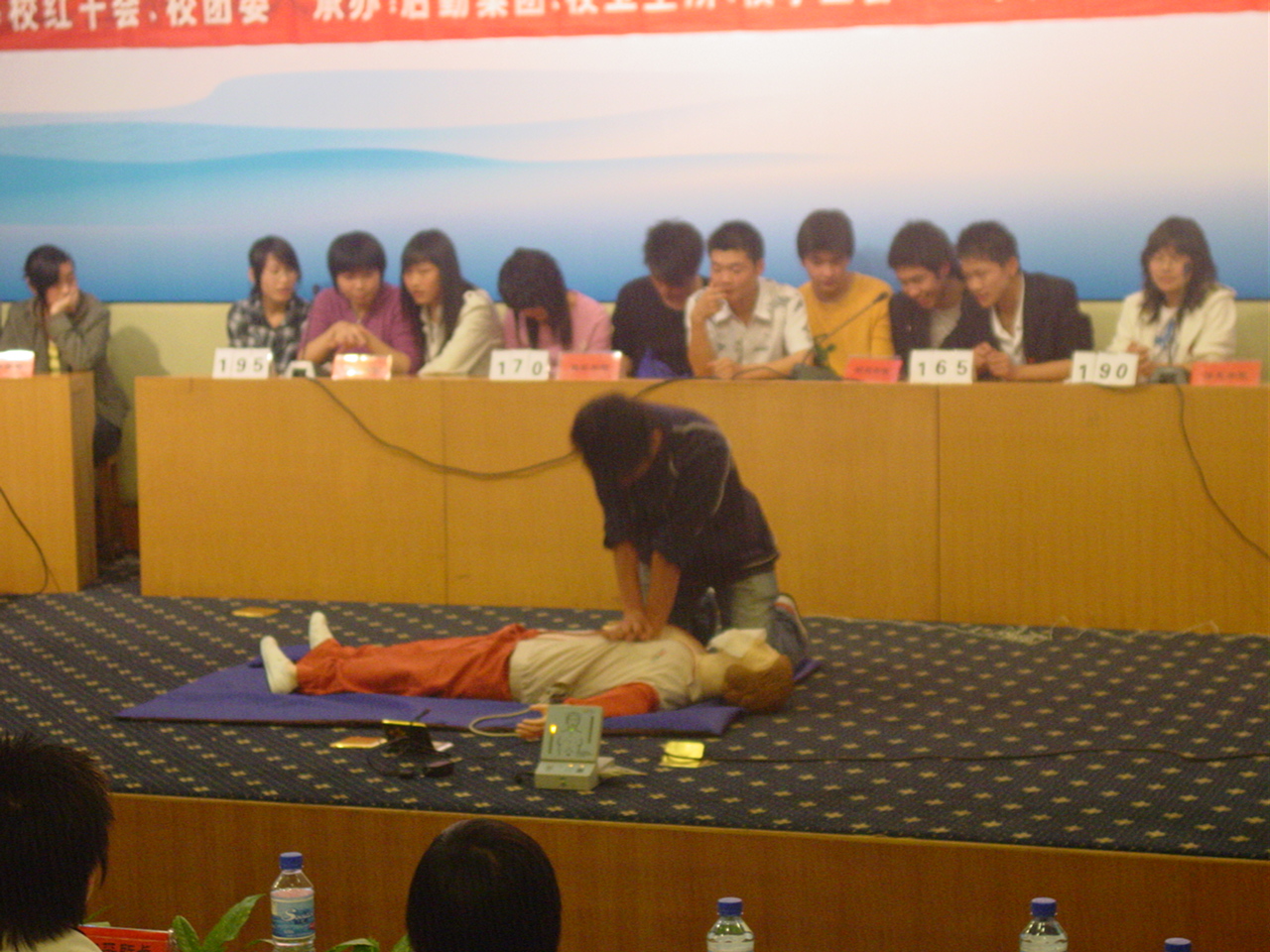 信息学院代表队有王雷、冯春兰、张越月三人组成。整场比赛分为理论知识竞赛和急救操作比赛!而信息学院代表队则在急救操作比赛中,凭借出色的发挥获得赢得了一致的好评。得到急救操作比赛的第一,最终排名第二的好成绩。