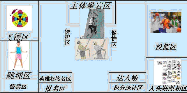 这次活动的基本原则是:每个同学自愿参加活动,可以到跳绳达人营、投篮达人营、攀岩达人营、飞镖达人营去获得分数。每个达人营的活动规则以及难度都各有不同,但只要同学努力都可以得到相应的分数。最后全部通过四个达人营,并且总得分在170分以上的同学可以得到丰厚礼品。整个活动过程中还有专人为同学们在竞赛中的英姿拍照留念。