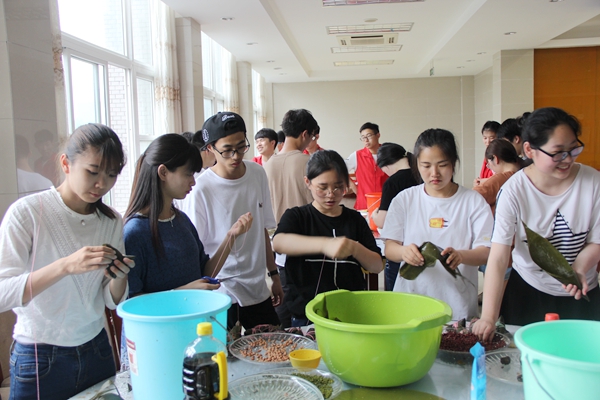 5月23日,在端午节来临之际,为弘扬中华民族的传统文化,传承世界非物质文化遗产,9999js金沙老品牌特承办校十七届文化艺术节之“五月五日午 赠我一支艾”——忆屈原·创意裹粽活动。