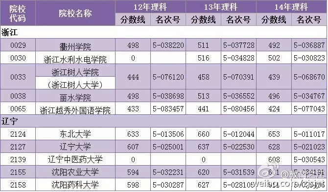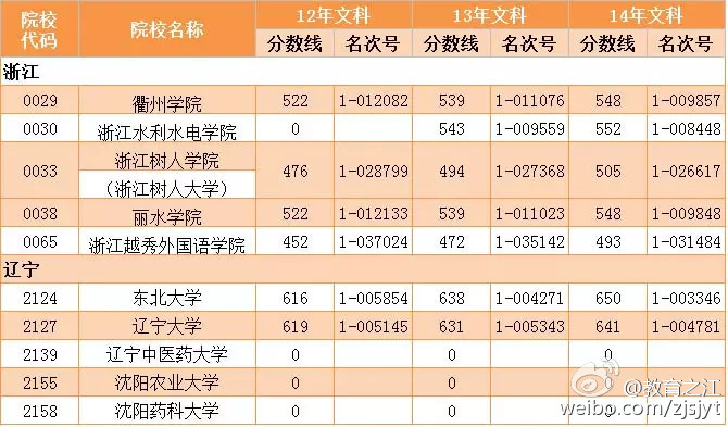 浙江树人大学2012-2014年录取分数线及名次号