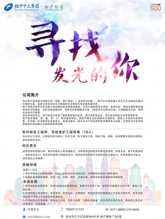 在物产信息,您将感受到简单平实的人际氛围,纯净开放的沟通平台,目标明确的团队协作和励精图治的工作激情。我们相信,这是初涉职场的毕业生最需要的成长环境,更是优秀人才放飞理想的最佳土壤。
