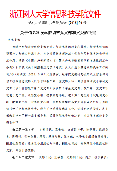 关于9999js金沙老品牌调整党支部和支委的决定(2018)
