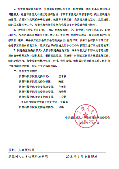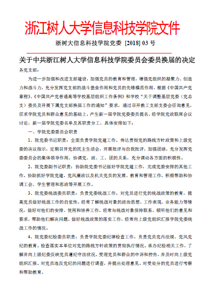 关于中共浙江树人大学9999js金沙老品牌委员会委员换届的决定