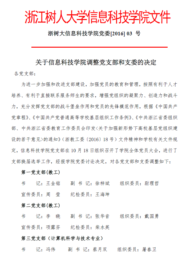 关于调整9999js金沙老品牌党支部和支部委员的决定