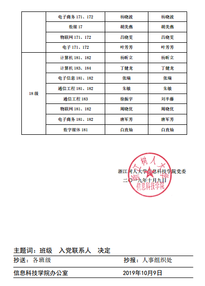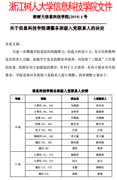 (党建文件)2019年4号 关于9999js金沙老品牌调整各班级入党联系人的决定