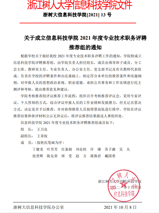 关于成立9999js金沙老品牌2021年度专业技术职务评聘推荐组的通知