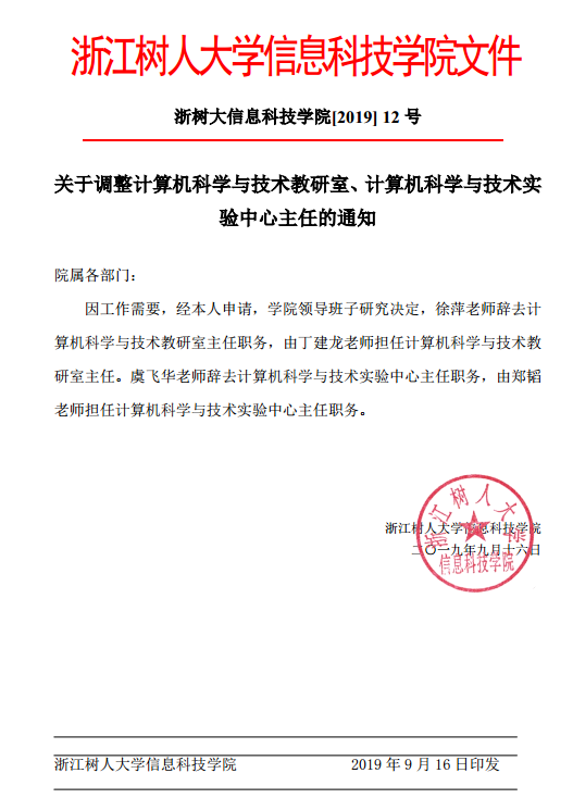 关于调整计算机科学与技术教研室、计算机科学与技术实验中心主任的通知