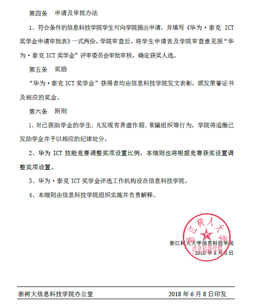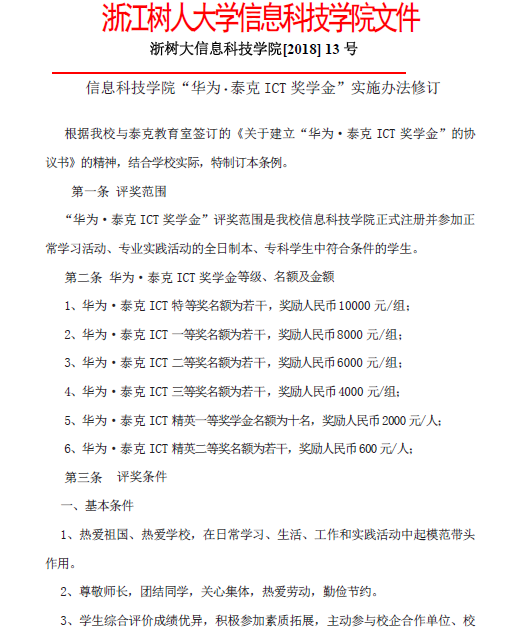 9999js金沙老品牌“华为•泰克ICT奖学金”实施办法修订