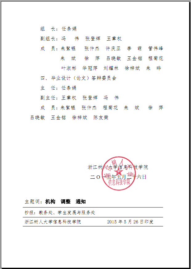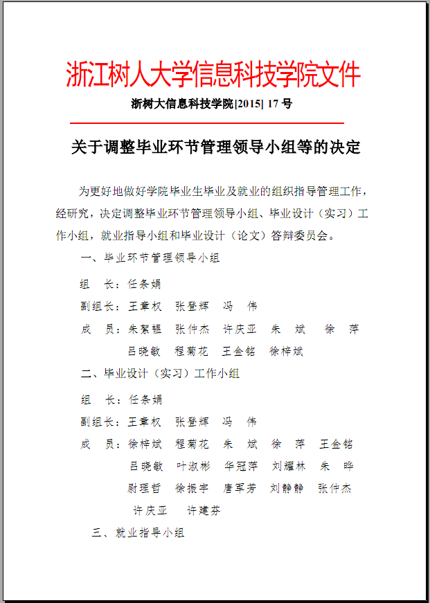 2015年17号 关于调整毕业环节管理领导小组等的决定